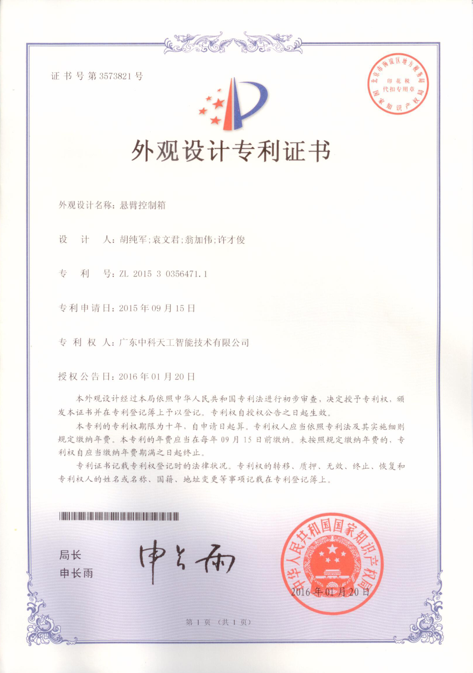 資質(zhì)榮譽(yù)-外觀(guān)設計懸臂控制箱