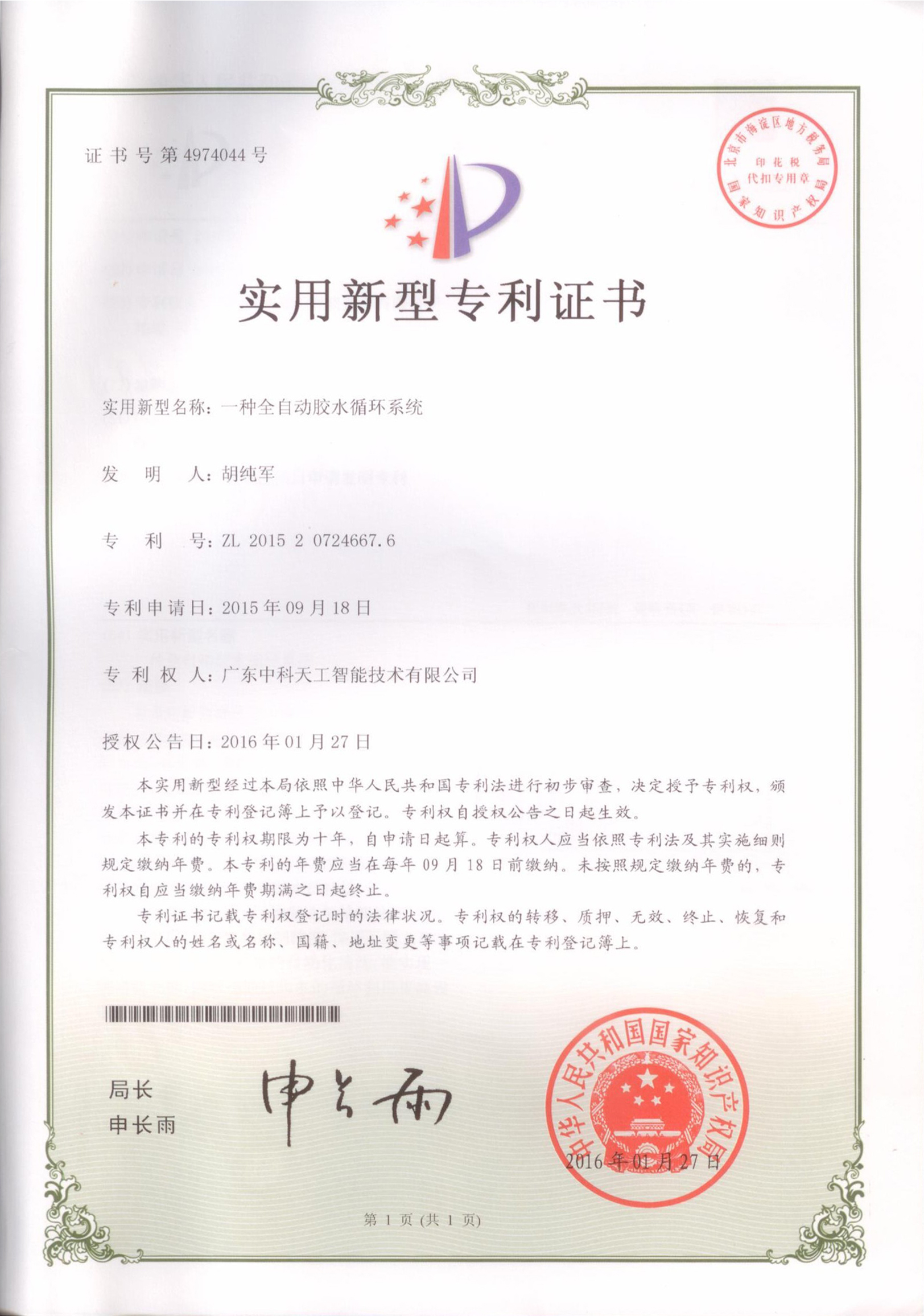 資質(zhì)榮譽(yù)-實(shí)用新型-一種全自動(dòng)膠水循環(huán)系統